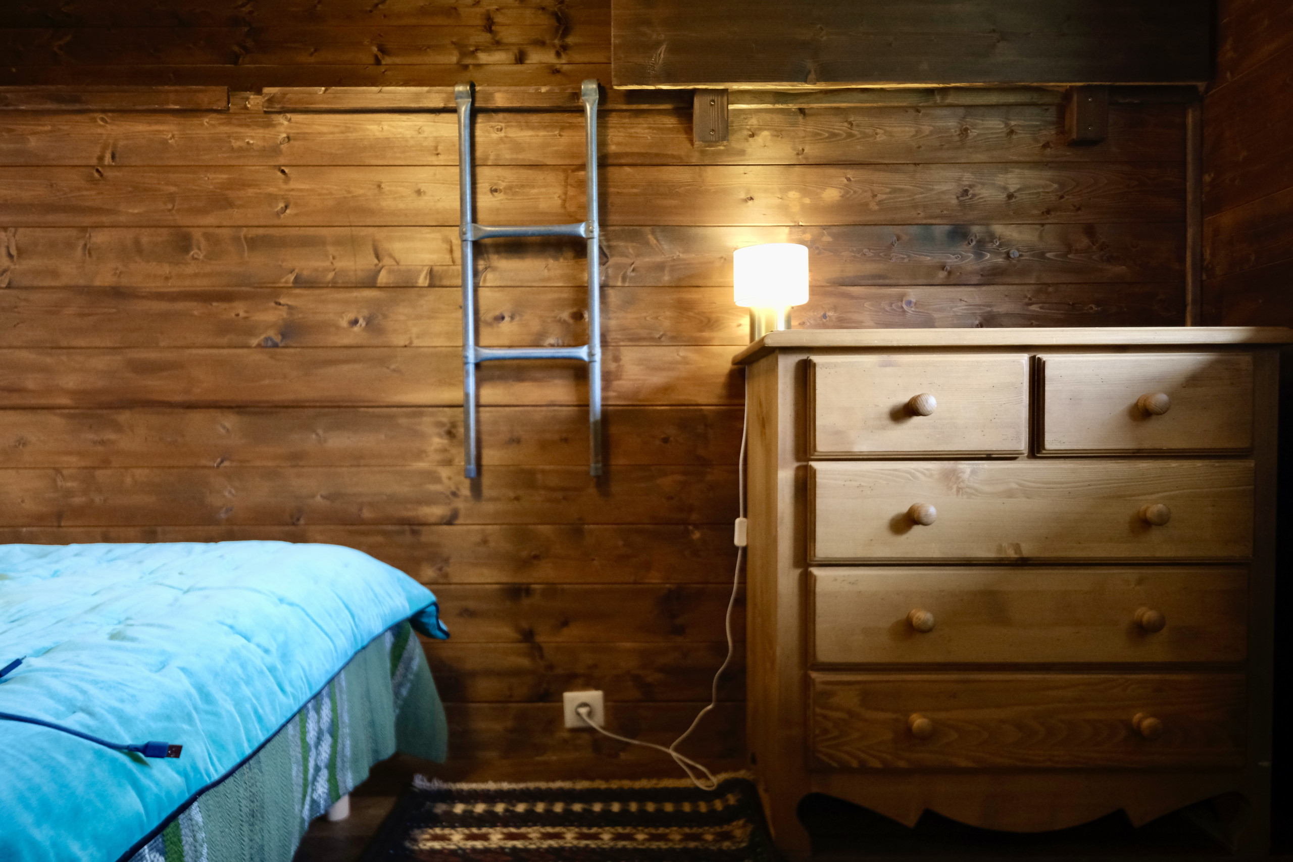 Charming chalet overlooking Lake Geneva and the Swiss Alps. Two bedrooms downstairs (4 and 2 sleeping spaces), one bathroom and a kitchen.