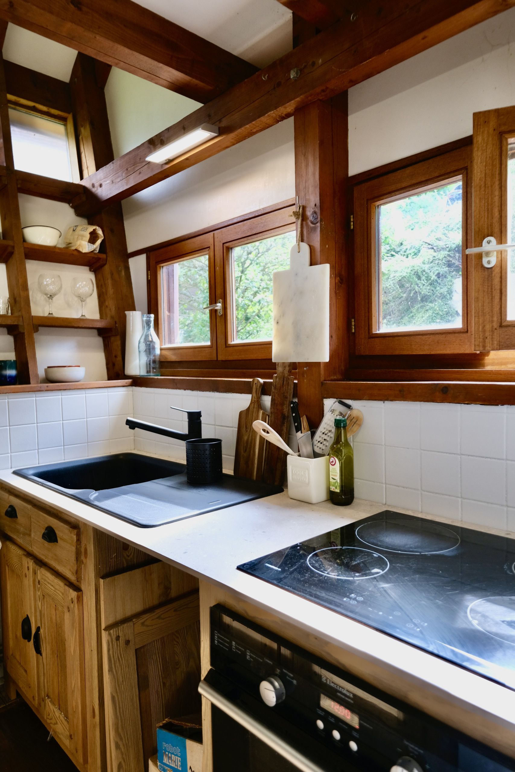 Bright living space of 26 m² with panoramic view. Upstairs, attic bedroom with small bathroom. 2 min drive from Thollon-les-Mémises (50 km of ski slopes) and 35 min from Portes du Soleil (Avoriaz, Morzine, Les Gets). Wood, blue and green decor referencing Lake Geneva, for a comfortable and authentic stay.